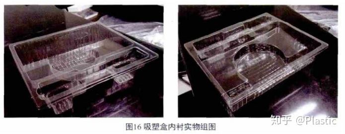 这是吸塑产品内托,根据客户 的耐温要求,对PET材料进行了配方的改进,改性后的PET材 料在高温环境下,吸塑托盘仍然不会变形或软塌,能经受高温 运输的考验。同时,经过对结构的巧妙设计,能使用较薄的塑 料片,制作出能承受较重产品的吸塑托盘。如组图16所示。