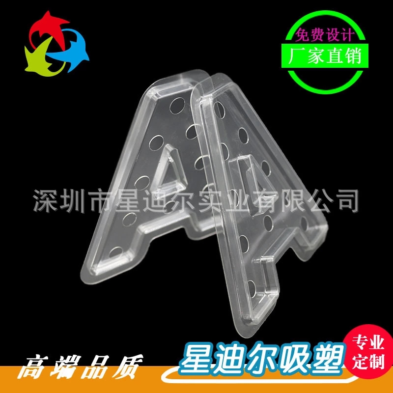 本款产品是依据客户提供的实物和相关要求而是设计定做的一款吸塑包装产品,采用环保PET透明材质,在保证对环境无公害的同时也能便于客户在购买时的挑选。字母吸塑包装独特的设计使产品看上去更加美观,便于吸塑包装在销售和展示。