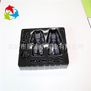 吸塑加工厂选用黑色PET片材为原材料,经过吸塑工艺热成型后形成的塑料制品,再由刀模冲切出完整的吸塑包装盒。颜色纯黑,便于在销售中的展示,材质环保对环境无污染,是一款“绿色”产品。黑色吸塑泡壳依据实际产品设计定制,完美贴合实物,便于销售。