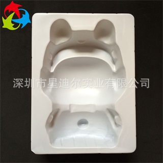 本款植绒礼品包装盒是吸塑加工厂依据客户提供的实物和相关要求而自行设计定做的一款塑料包装制品,采用环保白色PS植绒片材为原材料。因其形成的鲜明对比,在植绒礼品包装盒保证对环境无公害的同时也能便于客户在购买时的挑选。相对无言,植绒礼品包装盒采用内托设计形式使产品看上去更加美观,便于吸塑包装在销售中的展示。