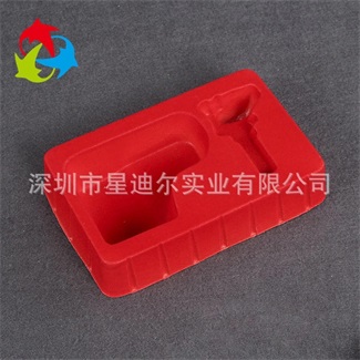 本款产品由拥有一流生产设备、具有十分丰富生产经验的深圳吸塑厂依据客户提供的实物以及相关要求而自行设计定做的一款吸塑产品。红色植绒吸塑内托采用环保红色PS吸塑内托片材为原材料,经热加工处理后成型的吸塑制品,能够在保证对环境无公害的同时也便于客户在购买时的挑选。红色植绒吸塑内托独特的设计形式使产品看上去更加美观,便于吸塑制品在销售中的展示。