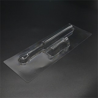 特点:本款产品是由吸塑包装厂依据客户提供的实物产品而设计定制的吸塑包装制品,其优点是吸塑盒能够完美跟形产品大小,和产品实物贴合度好,便于产品的安放和取出;本款吸塑包装制品采用全新环保材质,可降解性强,对环境无污染,符合环保绿色包装的要求;可定制性强,吸塑包装盒可依据客户实际要求定制产品的尺寸、材质、颜色、厚度等,另外还有各种颜色的植绒和防静电处理;独特的设计形式能够吸引顾客的眼球,便于产品的展示和销售。