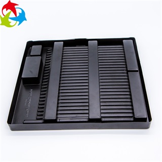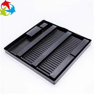 特点:本款产品是吸塑包装厂依据产品形状定制的吸塑包装制品,能够完美跟形产品大小,和产品实物贴合度好;所用的材质环保无公害,可降解性强,对环境无污染;PS吸塑盒颜色实按照客户要求选材,也可定制其他不同的颜色,有便于顾客购买时的挑选;黑色吸塑包装内托的设计形式,方便安放和取出,有利于产品的展示和销售。