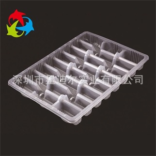 本款产品是由拥有着一流生产设备、具有十分丰富生产经验的深圳吸塑包装厂依据客户提供的实物以及相关要求而自行设计定做的一款吸塑产品。饺子吸塑托盘采用环保本色PP片材为原材料,经热加工处理后成型的吸塑内托,能够在保证对环境无公害的同时也便于客户在购买时的挑选。饺子吸塑托盘采用独特的设计形式使产品看上去更加美观,便于存放,也有利于吸塑产品在销售中的展示。