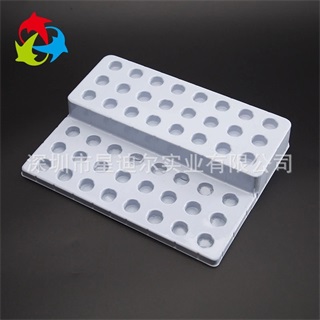 本款产品属于白色医药吸塑托盘,采用白色PVC片材为原材料,经过吸塑工艺及热加工处理后冷却形成的塑料包装制品。白色医药吸塑托盘依据产品形状及客户的相关要求而设计定制的吸塑包装,能够完美跟形产品大小,和实物贴合度好;白色医药吸塑托盘所用材质环保无公害,可降解性强,对环境无污染。白色医药吸塑托盘的特点有:耐热耐寒、不易污染、能够保护好实物、便于销售盒展示、成本相对较低。