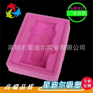 节省原辅材料、重量轻、运输方便、密封性能好,符合环保绿色包装的要求;定做植绒吸塑内托能包装任何异形产品,装箱无需另加缓冲材料;深圳吸塑厂生产的产品被包装产品透明可见,外形美观,便于销售,并适合机械化、自动化包装,便于现代化管理、节省人力、提高效率。