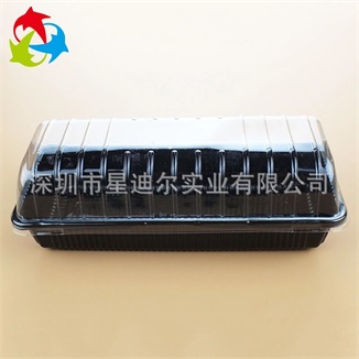 本款产品是依据客户提供的实物和相关要求而自行设计定做的一款吸塑包装产品。食品吸塑包装盒采用环保PET透明和黑色材质,在保证对环境无公害的同时也能便于客户在购买时的挑选。食品吸塑包装盒采用独特的设计方式——底托为黑色、顶盖为透明,这样使产品看上去更加美观,便于吸塑包装在商店中的展示和销售。