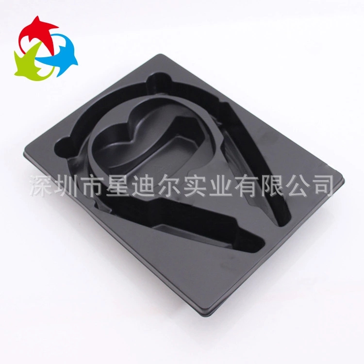 本款产品是依据客户提供的实物和相关要求而是设计定做的一款吸塑包装产品,采用环保PET材质,颜色纯黑,在保证对环境无公害的同时也能便于客户在购买时的挑选。耳机吸塑包装定制使产品看上去更加美观,便于与礼盒一起包装。